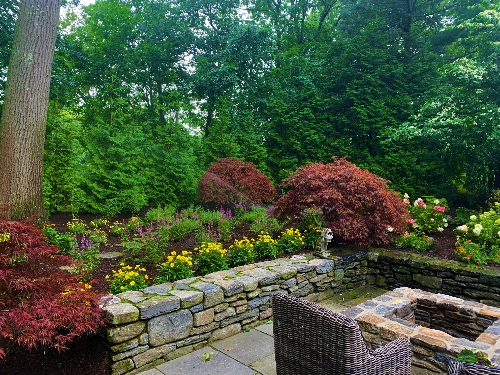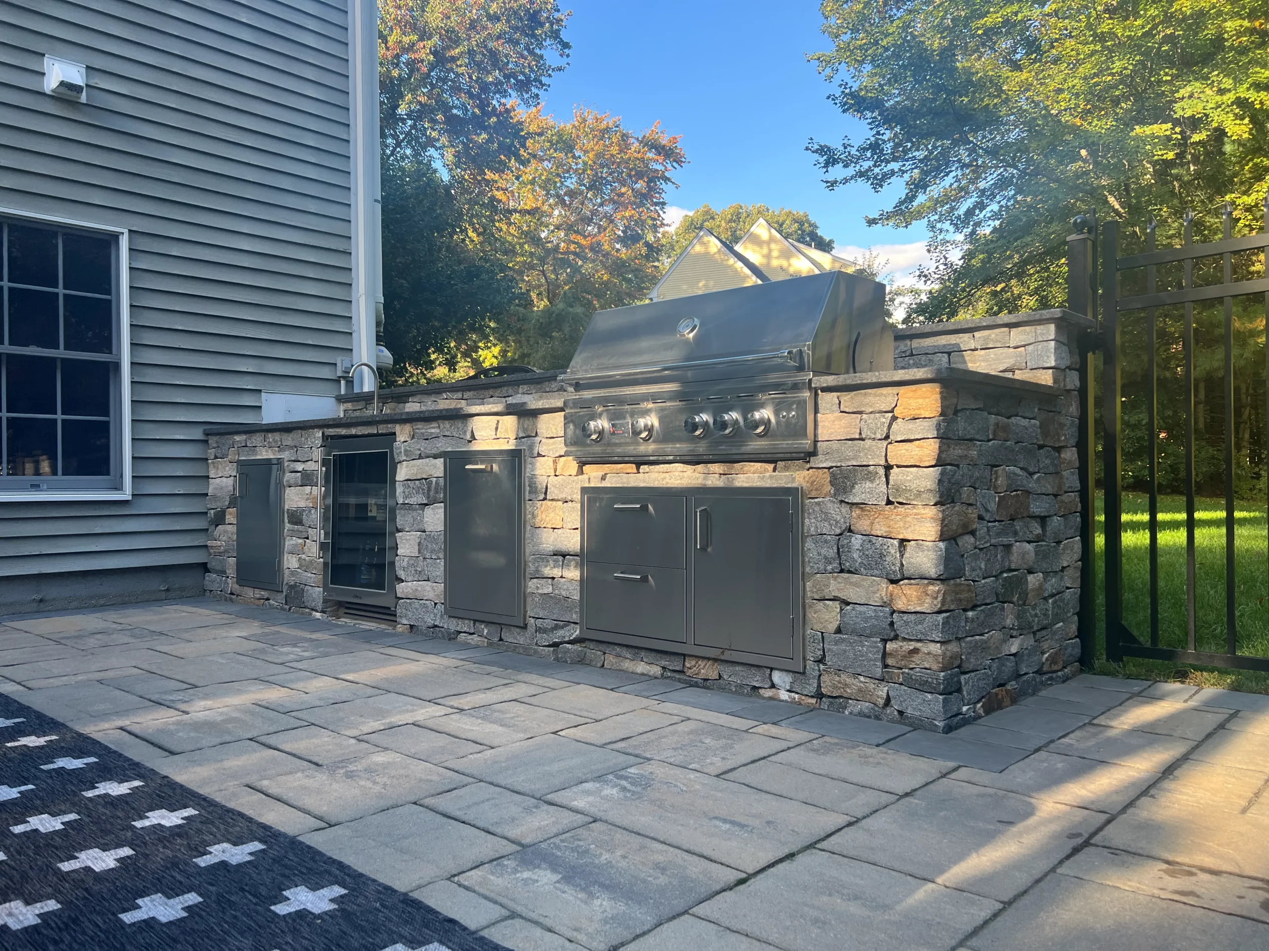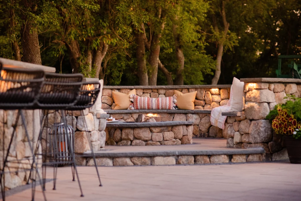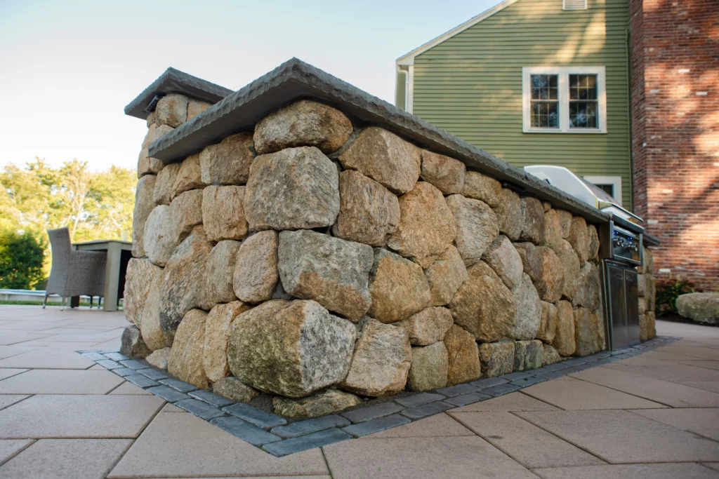 Bricks, Boulders and Bluestone, the foundation for outside life. Natural stones are the perfect match when it comes to building your outdoor oasis. With every wall we construct, patio and walkway that is installed, it brings your home one step closer to outdoor perfection. Adding these hardscape elements to your home can create an outdoor living room like you never imagined. Using fieldstone, bricks, bluestone and pavers, we can build fire pits, fireplaces, patios, walls, driveways, entry columns, boulder walls and our personal favorite- the outdoor kitchen.